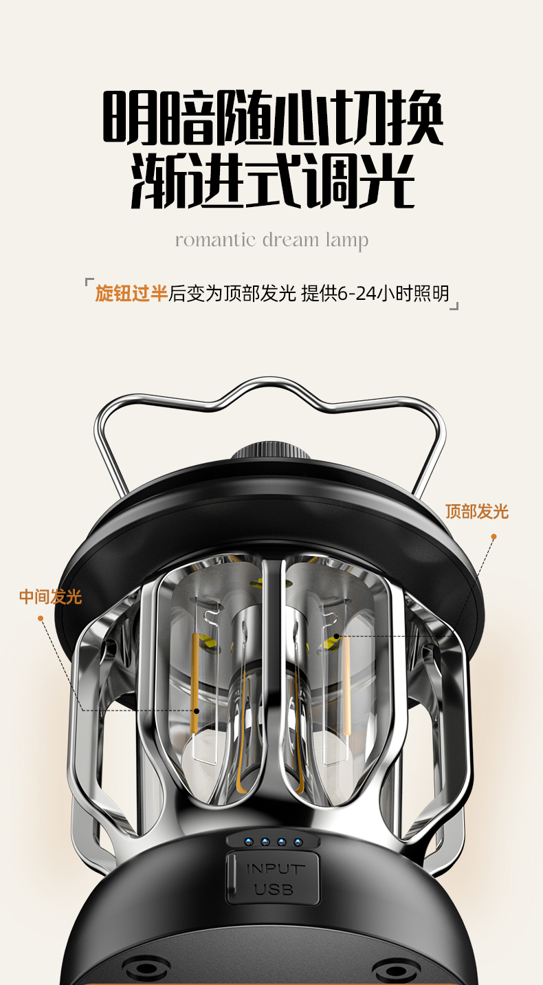 户外露营帐篷双光源野营地灯多功能手提复古马灯充电超亮氛围挂灯